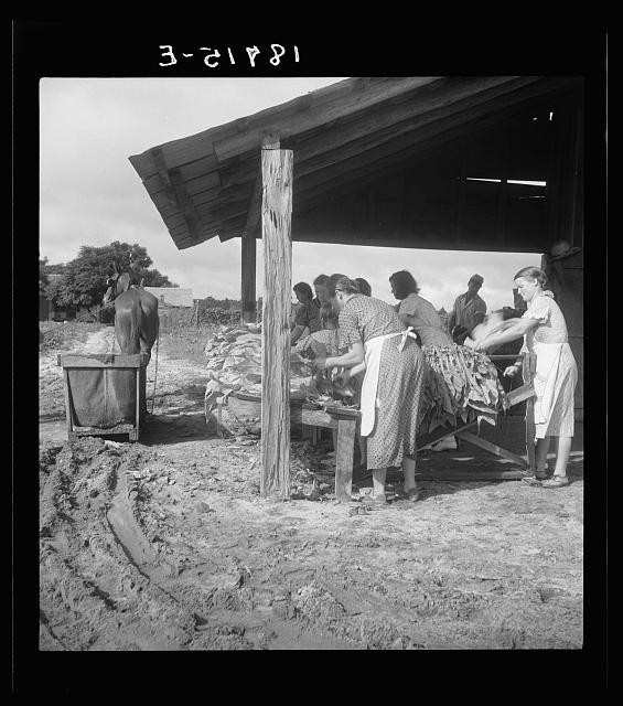 Cousins, aunts, and uncles gathered at the tobacco barn — a weathered structure with high rafters and a large overhang in front to provide a modicum of shade for the tobacco workers. Some would be sent out with the tractor to cut the stalks of tobacco in the field, filling the large wagon that once carried the water used to grow the crop. They would bring the stalks of tobacco back to the barn where “strippers” with machetes would cut the leaves from the stalks.